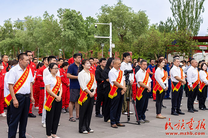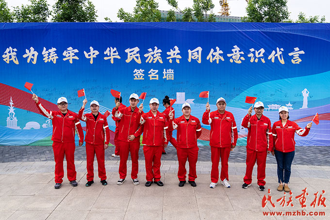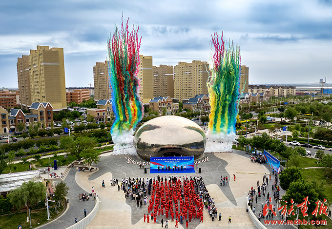 新疆维吾尔自治区克拉玛依市第44个民族团结进步教育月启动仪式暨“油城逐梦·籽籽同心”地标打卡活动在克一号井(大油泡)广场举行。(闵勇 摄影)